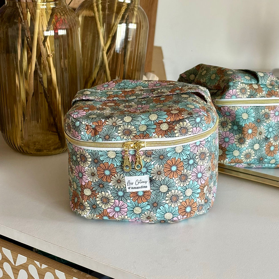 Le modèle Rosalie séduit par son tissu fleuri aux tons doux et son intérieur spacieux, idéal pour organiser maquillage, soins, pharmacie ou essentiels de voyage et bébé.